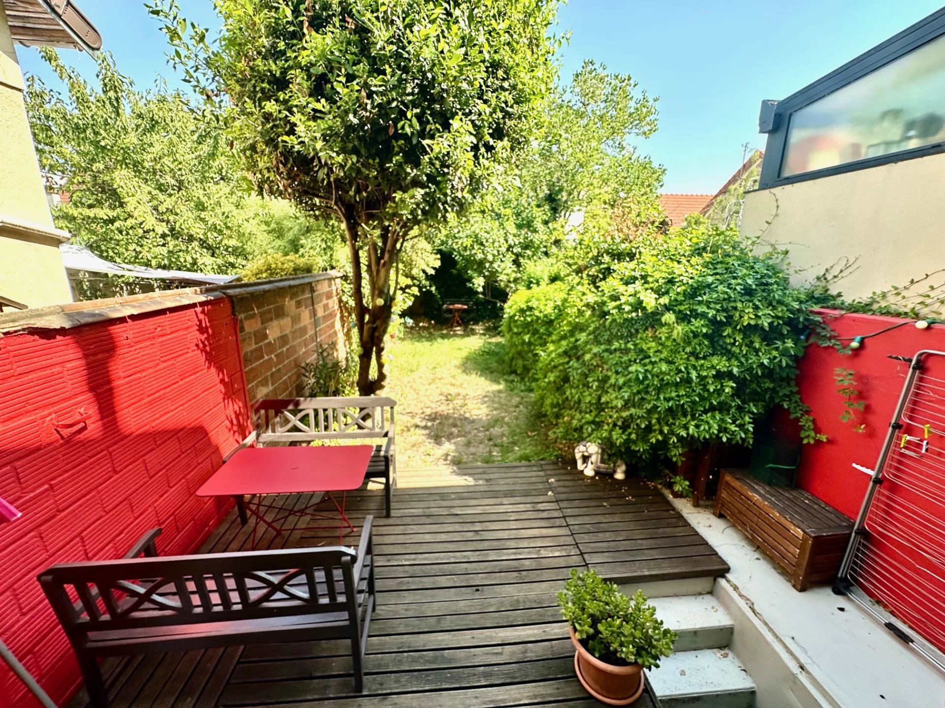 Alexandre immobilier vous propose située dans quartier pavillonnaire proche RER et commerces, maison de 85 m² au sol, 64 m² carrez élevée sur sous-sol total composée au RDC un séjour avec cuisine ouverte donnant sur terrasse et jardin à l'arrière, à l'étage 2 chambres, une salle de bains avec wc, au sous-sol pièce de 18 m², cave, salle d'eau et wc, chaufferie, buanderie et sauna.